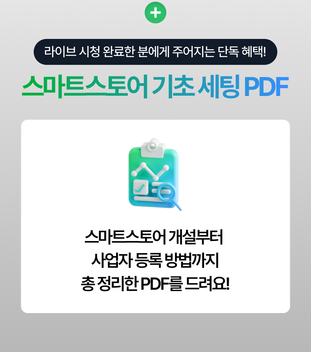 - 신청만 하면 혜택으로 스마트스토어 기초 세팅 PDF 자료 제공!